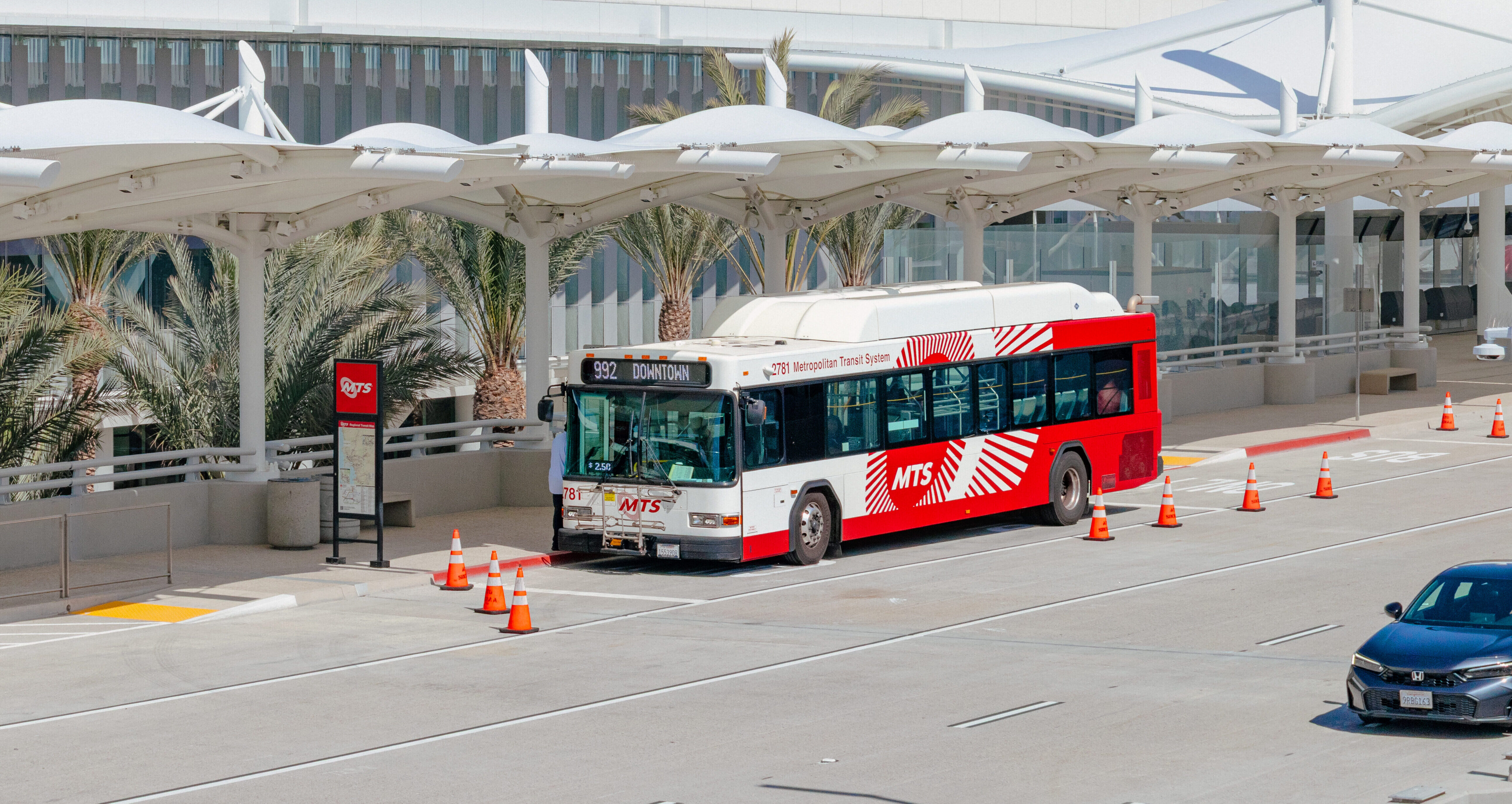 Traveling between San Diego International Airport and downtown is easy with convenient public transit options offered by the San Diego Metropolitan Transit System (MTS). MTS offers contactless payment by simply tapping your debit/credit card or mobile wallet – no cash or ticket needed.